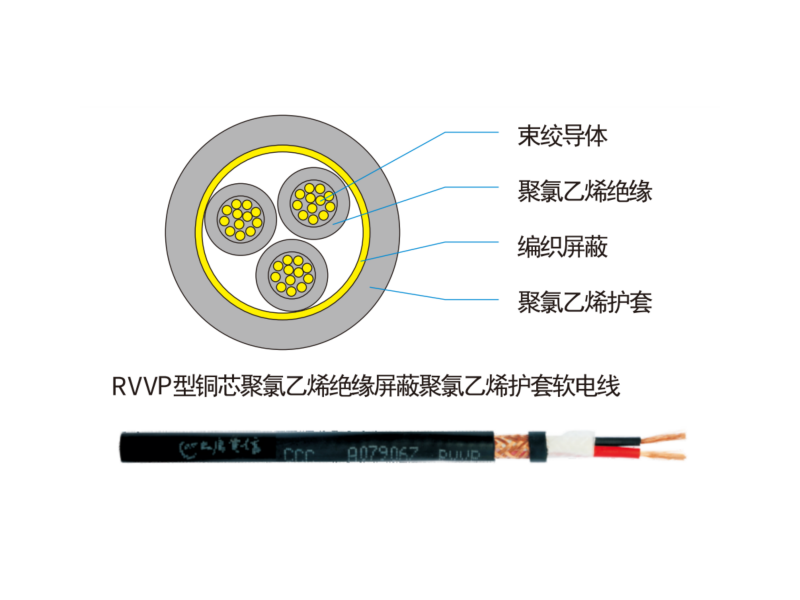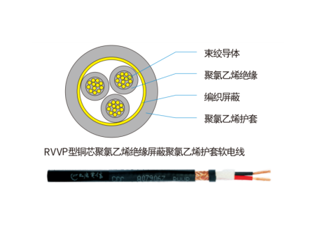 铜芯聚氯乙烯绝缘聚氯乙烯护套屏蔽软电缆(RVVP)