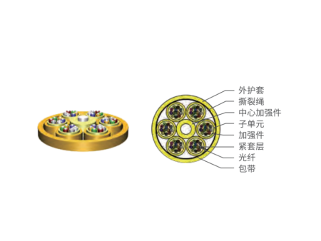 该结构光缆光纤密集度高、柔软、质轻、灵活,且具备一 定抗拉、抗压性能,成端方便,广泛应用于大楼水平布线,也可以用于各类光跳线及设备互联,适用于室内和非露天室外环境。