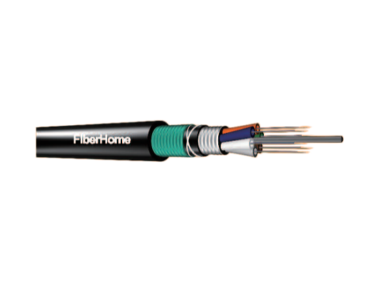 金属加强构件、松套层绞填充式、铝-聚乙烯内护套、皱纹钢带铠装、聚乙烯外护层的通信用室外光缆。